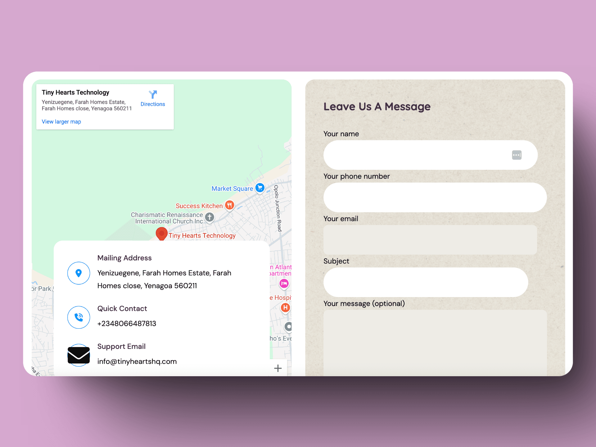 Email (info@tinyheartshq.com)